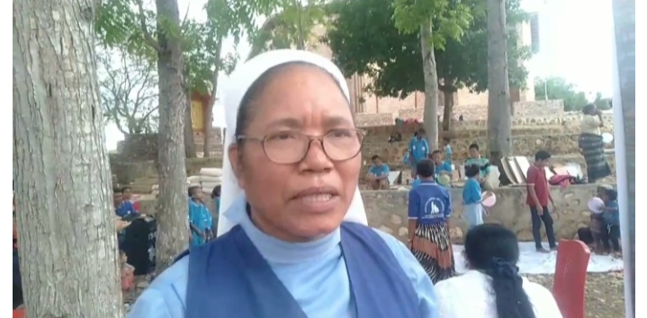 Ketua Yayasan Sosial Ibu Anfrida Naob, Suster Maria Marcella PRR, menjelaskan alasan pemilihan lokasi di gereja yang memiliki taman doa dan patung Santa Maria Imaculata.